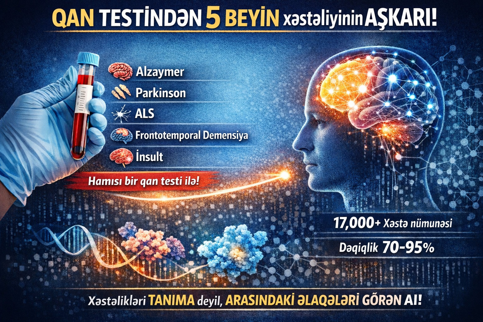 İsveçin Lund Universiteti bir qan analizindən eyni anda 5 beyin xəstəliyini aşkar edən süni intellekt modeli işləyib hazırladı.